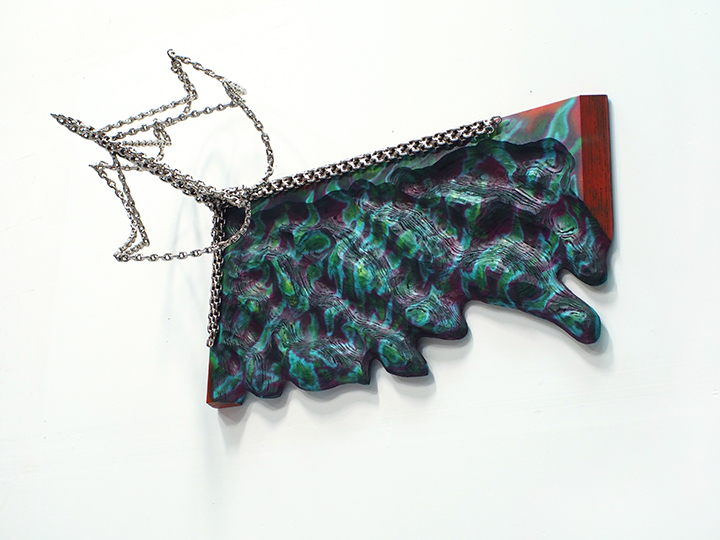 Plywood, steel, nickel electroplate, paint.